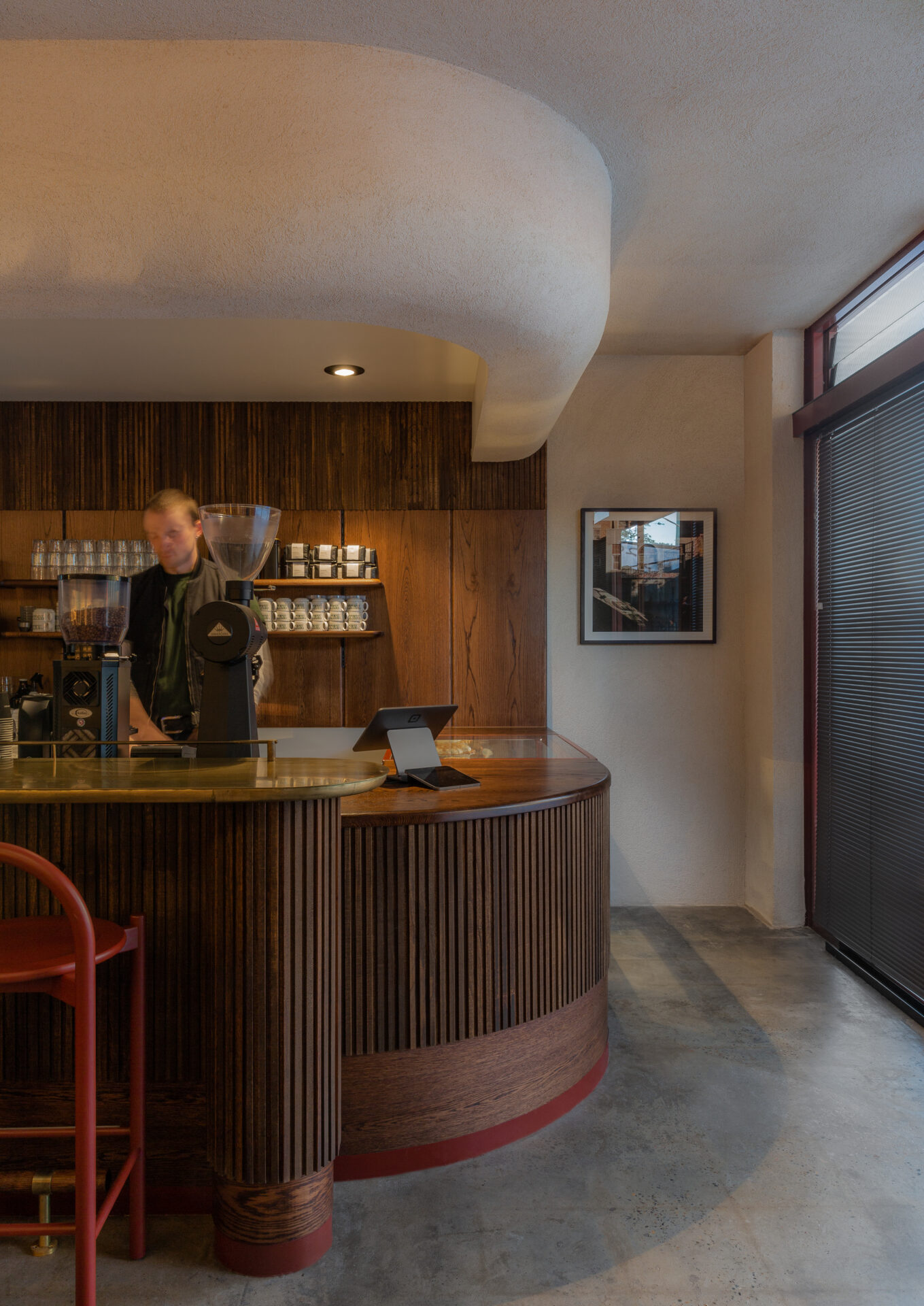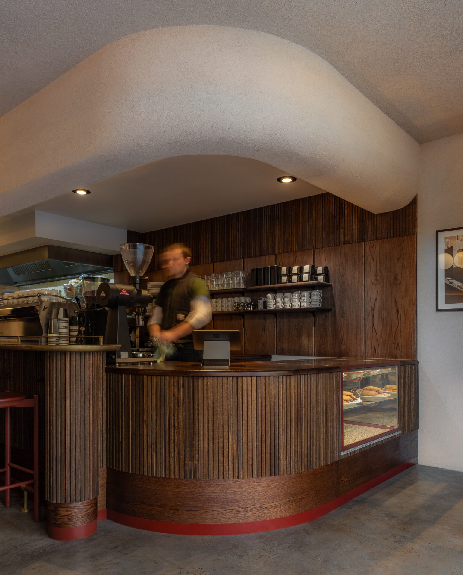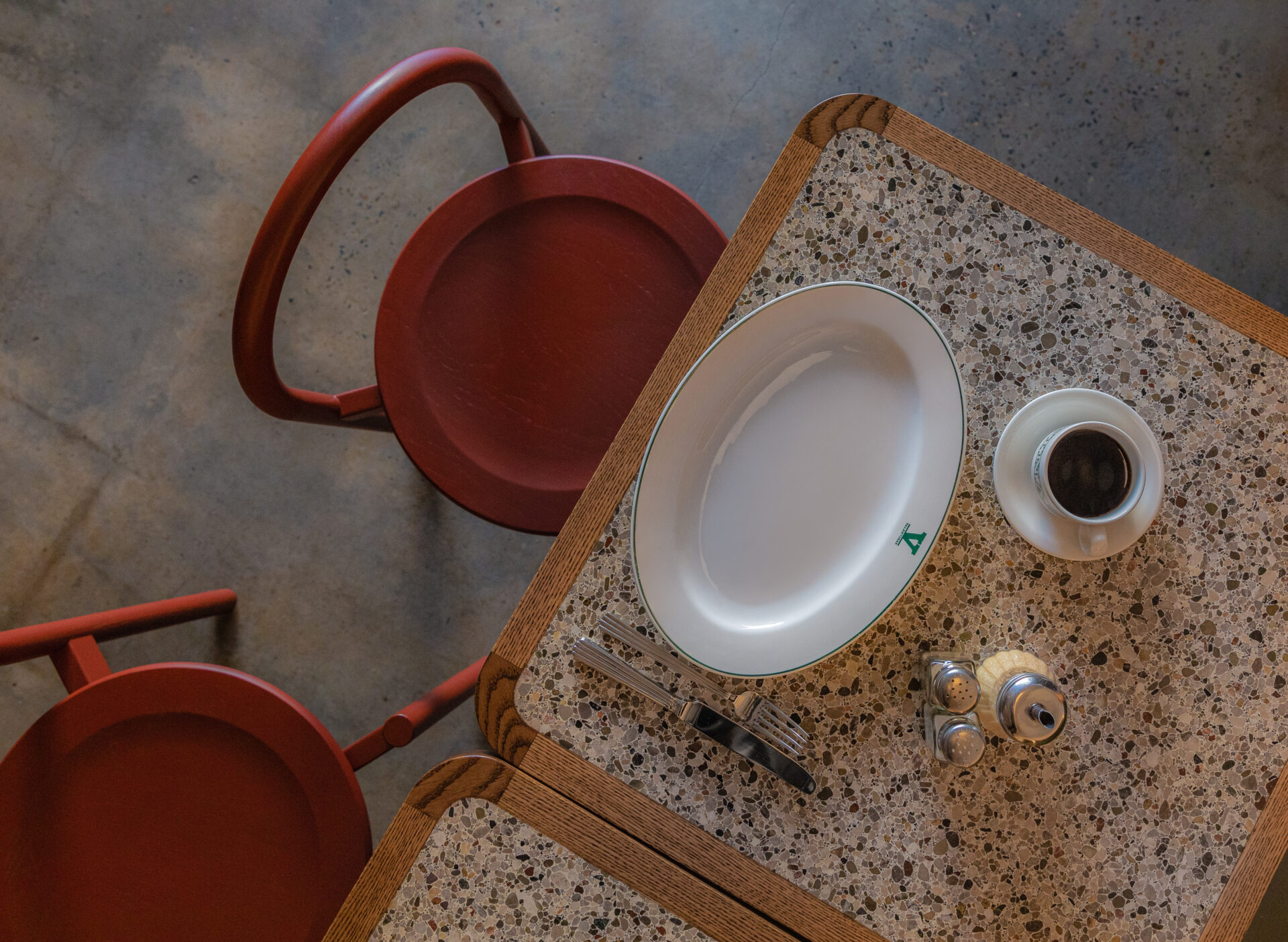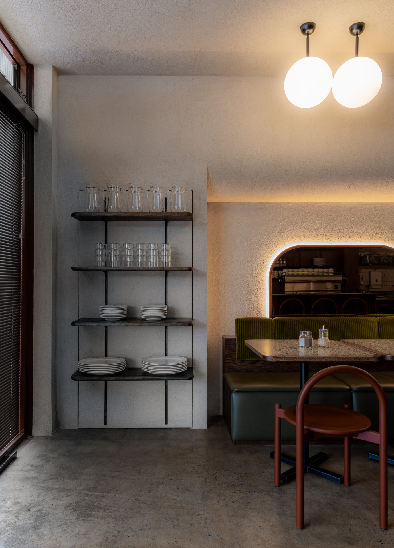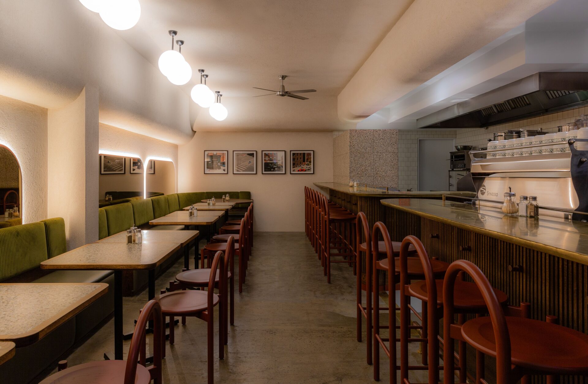 Behind an old-school green and white facade complete with striped awnings and hand lettered signage by Lynes and Co lies an interior inspired by road tripping through the USA.
